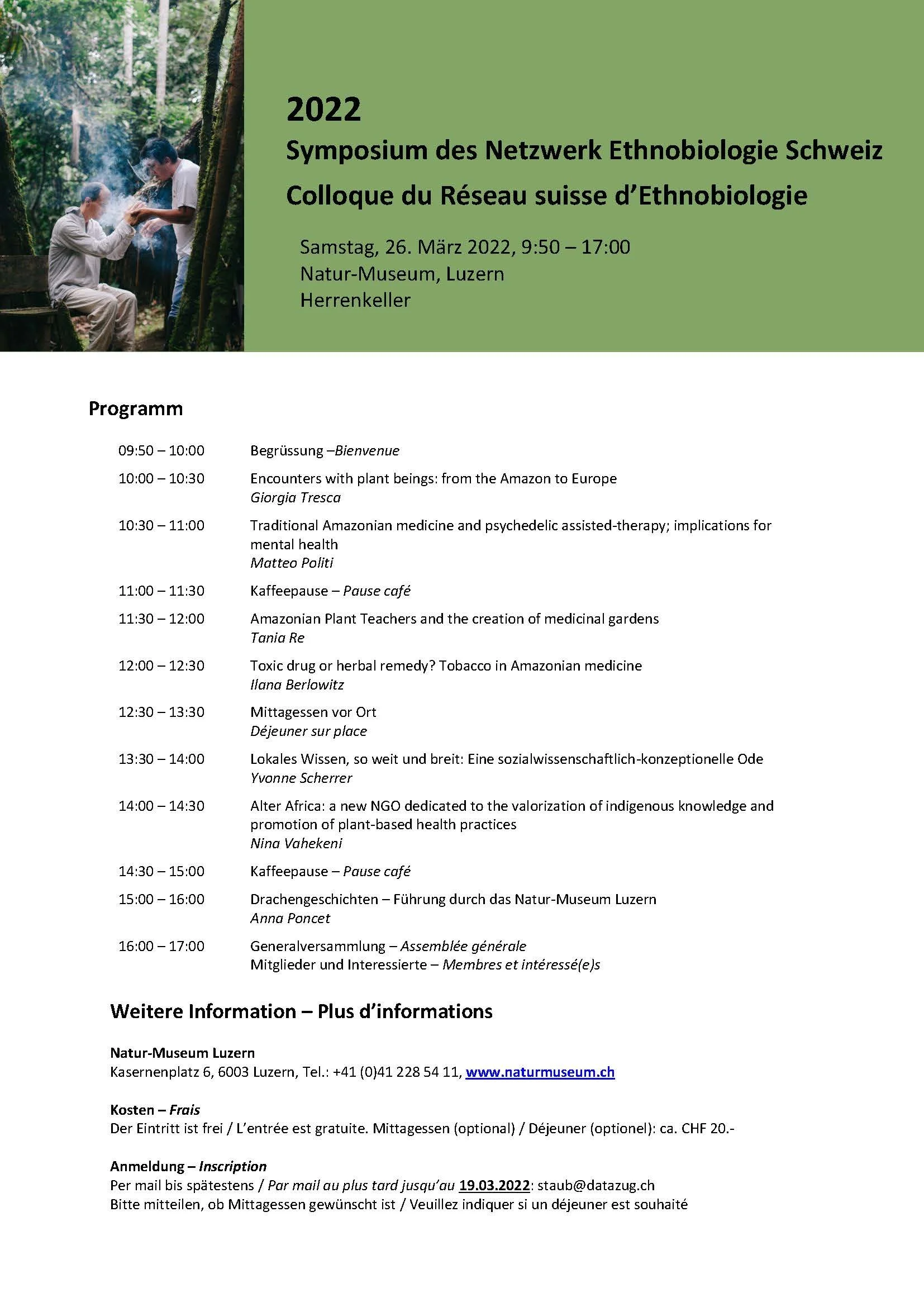 Alter Africa sera présente le samedi 25 mars dès 9h30 au Colloque annuel du Réseau Suisse d'Ethnobiologie qui se tiendra au Natur-Museum de Lucerne. Croissants et café offerts!